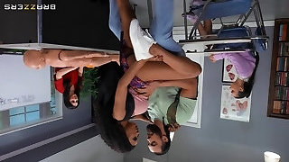 Fit Buxom Ebony Has Crazy 3-some With Her BF And Brunette Cougar Teacher During the First-ever-aid Lesson
