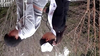 Hardcore outdoor fucking with a Japanese nurse dressed in lingerie