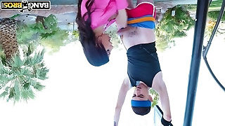 Upskirt anal fuck with cumshot with teen babe in stockings