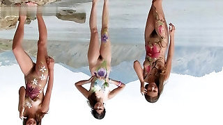 Bombastic Young Nudist Babes Sunbathe Without Bra At The Beach