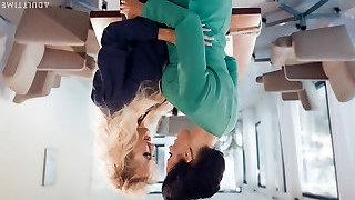 苗条的金发少女被bff的老板的英国广播公司涂黑