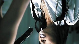 宏伟的日本尤物在紧身衣组钻上约束束缚