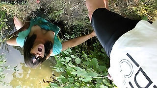 伊莎贝拉*德*拉阿穿着一条裙子,在漱口一个抽水机后被扣着